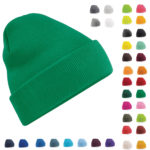 - Bonnet en maille tricotée avec bordure côtelée.