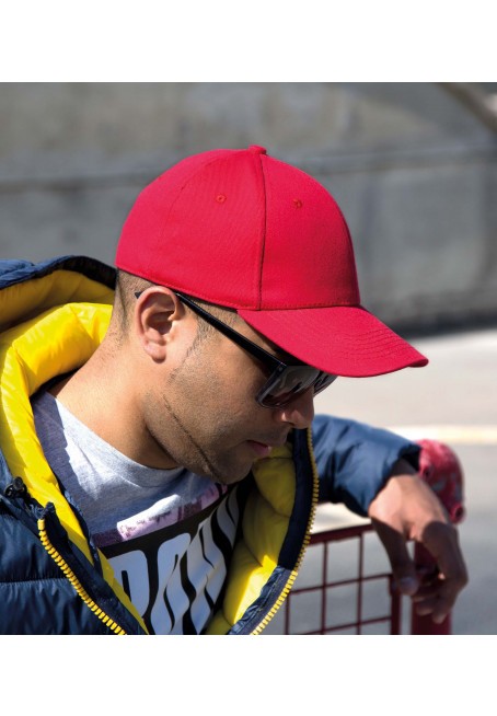 - Visière en PU recyclé courbée avec 6 coutures. Œillets cousus. Bouton au sommet de la casquette